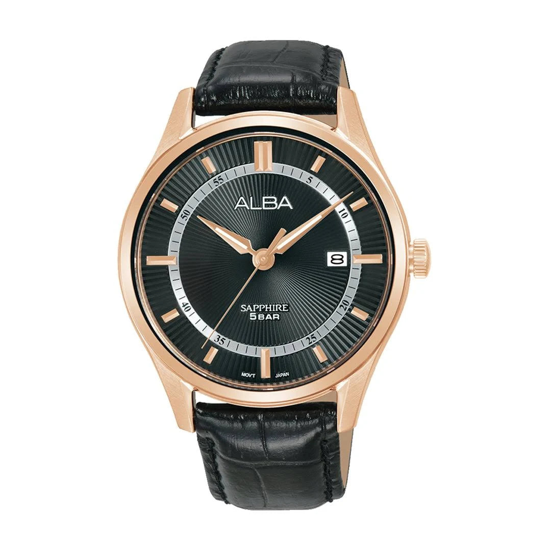 ALBA Asterix Black Dial with Black Leather Strap Men's Watch AS9R22X1