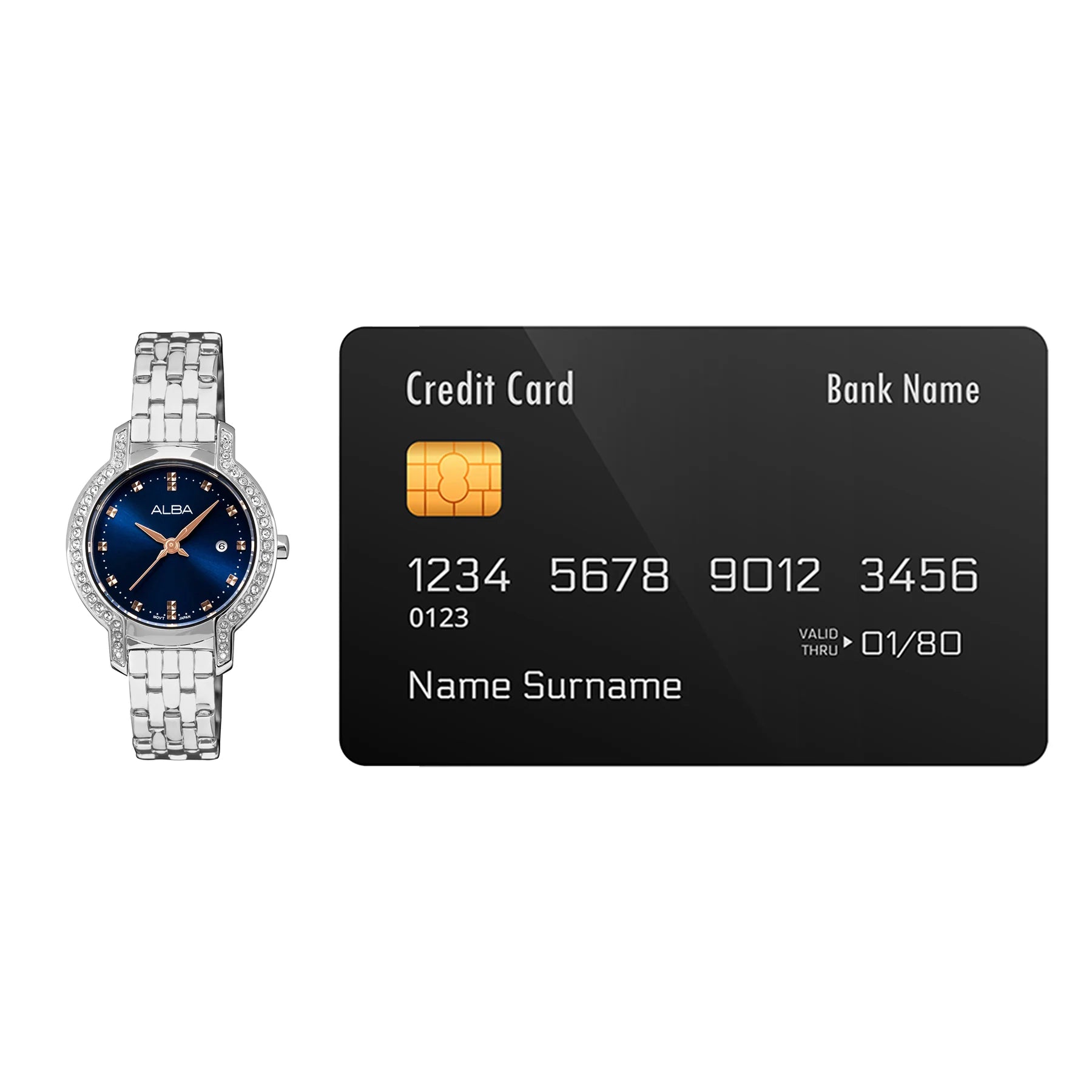 The ALBA Azure Blue Dial with Crystals Ladies Watch AH7CM5X1 is a stunning blend of timeless elegance and modern charm. The captivating azure blue dial adds a refreshing pop of color, beautifully complemented by sparkling crystals around the bezel, creating a radiant and sophisticated look. The sleek stainless steel case offers durability, while the matching stainless steel band ensures a comfortable fit. Perfect for both casual and formal occasions, this watch is designed to make a statement with its chic and refined aesthetic, making it an essential accessory for the stylish woman.