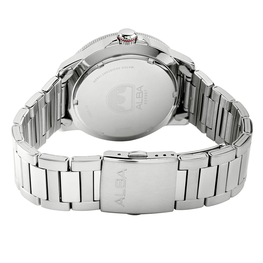 The ALBA Blue & Red Dial Quartz Men's Watch - AS9T97X1 is a striking timepiece that blends bold design with precise functionality. The dynamic combination of a vibrant blue and red dial creates an eye-catching contrast, giving the watch a sporty yet sophisticated feel. Powered by reliable quartz movement, this watch offers accurate timekeeping with minimal maintenance. Its stainless steel case and band ensure durability and a sleek finish, while the luminous hands and markers allow for easy readability in any light. Perfect for the modern man, this watch combines performance and style effortlessly.