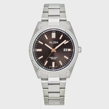 The ALBA Brown Textured Dial Men's Watch (Model AS9S65X1) is a sophisticated timepiece that combines rich design with functionality. Featuring a distinctive brown textured dial, this watch exudes warmth and character, offering a unique visual depth that stands out from traditional styles. The sleek stainless steel case provides a modern contrast, while the precision quartz movement ensures reliable timekeeping. Whether for business or casual wear, the ALBA Brown Textured Dial Men's Watch brings a refined touch to any outfit, making it a perfect accessory for the discerning gentleman.