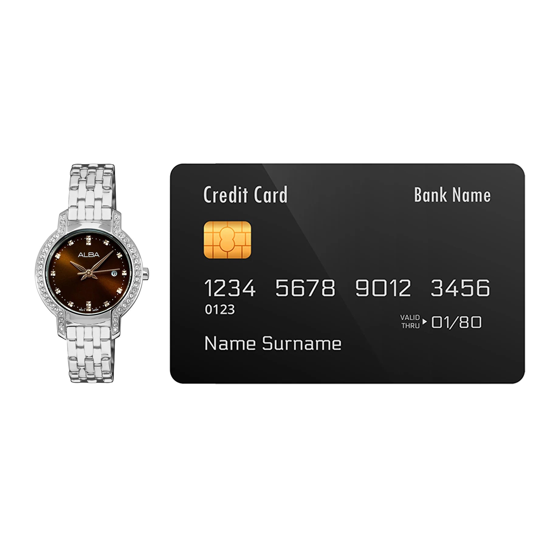 The ALBA Chocolate Brown Dial with Crystals Ladies Watch AH7CM3X1 is a striking timepiece that combines elegance with a touch of sparkle. Featuring a rich chocolate brown dial, this watch exudes sophistication, making it a versatile accessory for both everyday wear and special occasions. The dial is beautifully accented with shimmering crystals, adding a subtle yet luxurious gleam. The sleek stainless steel case ensures durability, while the comfortable bracelet offers a perfect fit for any wrist. With its chic design and refined details, this watch is the ideal blend of style and function for the modern woman.