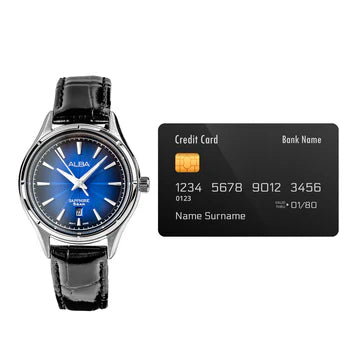 The ALBA Deep Blue Patterned Dial Ladies Watch AH7CZ1X1 blends elegance with timeless style, featuring a rich deep blue dial adorned with a subtle, intricate pattern. The watch is complemented by a sleek black leather strap, offering both comfort and sophistication. With its refined design and eye-catching details, this watch is a perfect accessory for any occasion, effortlessly elevating your look.
