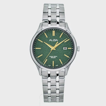 The ALBA Green Marble Dial Men's Watch (Model AS9R29X1) is a bold and sophisticated timepiece that brings a touch of nature to your wrist. Featuring a striking green marble dial, each piece is uniquely patterned, offering a distinctive look. The stainless steel case and band provide durability and a sleek finish, making it suitable for both formal and casual wear. Powered by reliable quartz movement, this watch combines style, precision, and individuality, making it an ideal choice for those who appreciate both luxury and uniqueness in their accessories.