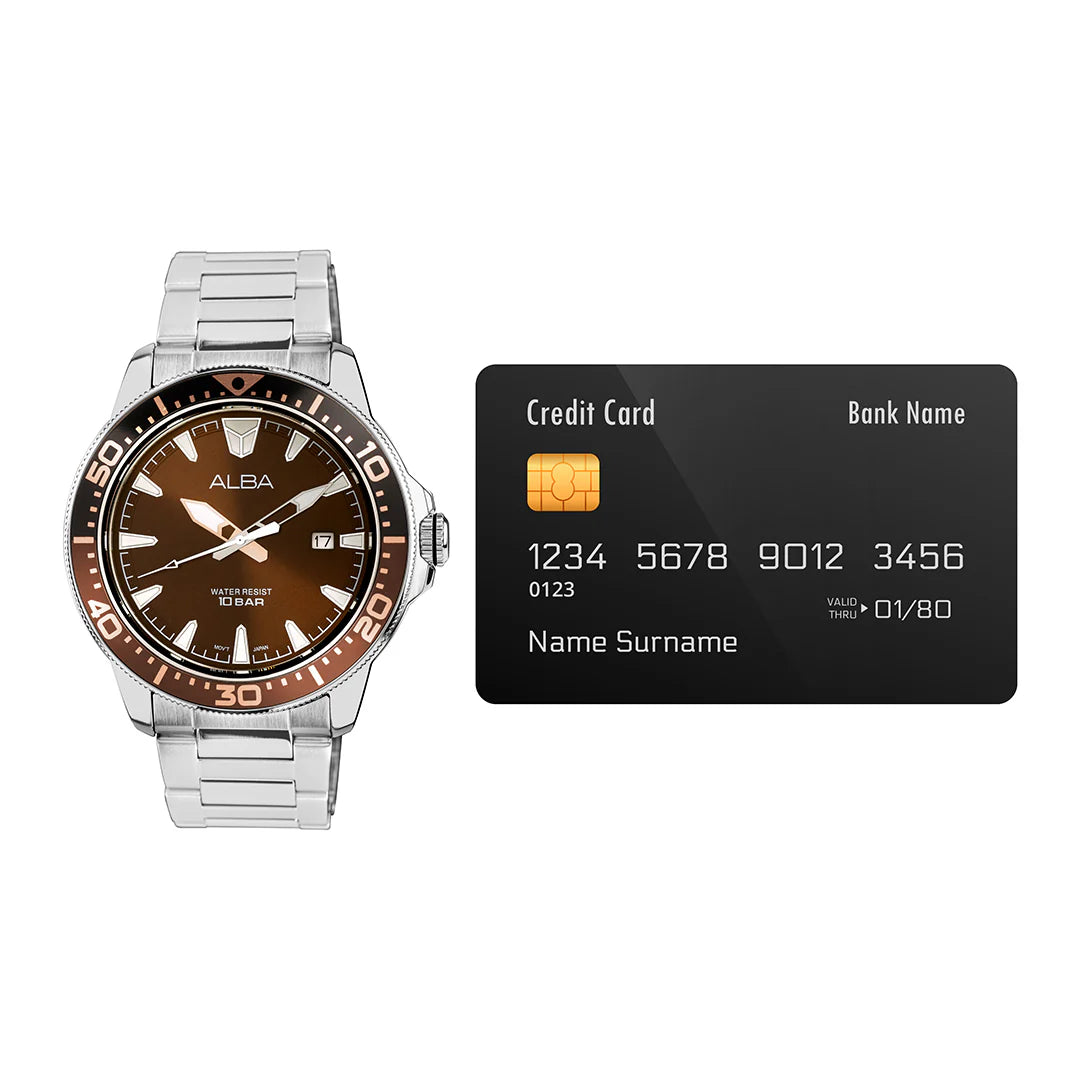 The ALBA Hickory Brown Dial Quartz Men's Watch - AS9T91X1 offers a timeless blend of elegance and precision. Featuring a rich hickory brown dial, this watch exudes a sophisticated, classic appeal that makes it perfect for both casual and formal occasions. The sleek, minimal design is enhanced by its quartz movement, ensuring reliable timekeeping with every tick. Housed in a durable stainless steel case and complemented by a comfortable stainless steel band, this watch is as practical as it is stylish. Whether you're dressing up or down, the ALBA Hickory Brown Dial watch is a versatile and refined accessory for the modern man.