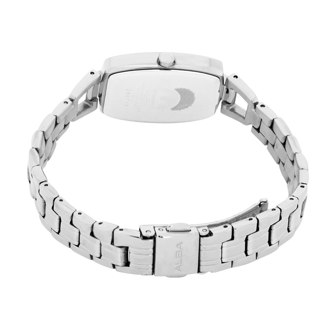 The ALBA AH7AU7X1 Midnight Blue Ornate Ladies Watch captures the essence of refined elegance with its stunning midnight blue dial. Featuring intricate ornamental details, the watch exudes a sense of luxury and sophistication. The stainless steel case and bracelet perfectly complement the rich blue tones, making it an exquisite accessory for any occasion. Designed for the modern woman who appreciates timeless beauty and fine craftsmanship, this watch combines a bold, yet delicate aesthetic with dependable precision.
