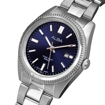 The ALBA Midnight Blue Patterned Ladies Watch AH7CL1X1 features a stunning midnight blue dial with intricate patterns, offering a perfect blend of elegance and modern style. With a sleek stainless steel case and refined design, it’s the ideal accessory for any occasion, exuding sophistication and timeless beauty.