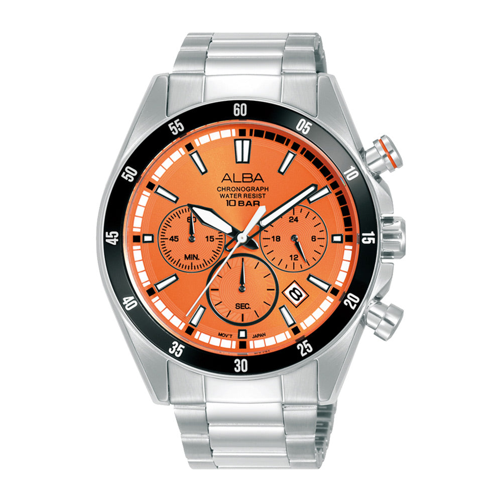 The ALBA Orange Dial Men's Watch - AT3J21X1 is a bold and vibrant timepiece designed to make a statement. Featuring an eye-catching orange dial, it adds a splash of color to your wrist while maintaining a sleek and modern look. Powered by reliable quartz movement, it ensures precise timekeeping. The durable stainless steel case and band provide both strength and style, making this watch perfect for everyday wear. Luminous hands and markers enhance readability in low-light conditions, while the overall design offers a perfect balance of practicality and striking aesthetics. Ideal for the man who isn’t afraid to stand out.