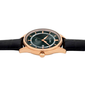 The ALBA Rose Gold Midnight Black Ladies Watch (AH7BR0X1) combines timeless elegance with modern sophistication. Its striking midnight black dial is beautifully accented with rose gold details, while luminous hands ensure clarity. A perfect blend of style and precision, this watch is ideal for any occasion.