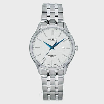 ALBA White Marble Dial with Silver Metal Straps Men's Watch AS9R35X1