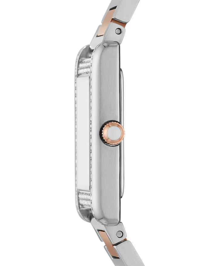 The Emporio Armani AR11626 Genni Watch for Women exudes elegance and sophistication. Featuring a sleek silver-tone stainless steel case and bracelet, this watch highlights a minimalist white dial with delicate silver-tone markers and hands. Its refined design and versatile style make it perfect for both everyday wear and special occasions. With its timeless appeal and classic aesthetic, this watch is an essential accessory for any woman’s collection.