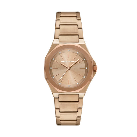 Armani Exchange Quartz Beige Gold Dial Analog Stainless Steel Women Watch AX4616