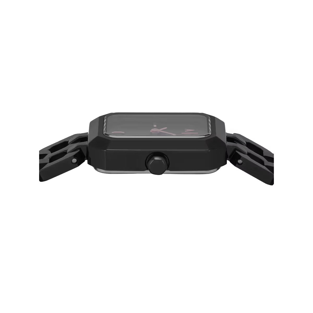 Step into modern sophistication with Armani Exchange’s striking 27mm two-hand watch, designed for the stylish woman of today. The bold rectangular case frames a sleek black sunray dial, creating a seamless blend of minimalist elegance and distinctive style. Complemented by a refined black stainless steel bracelet, this timepiece effortlessly elevates any outfit. Powered by precise quartz movement, it offers dependable accuracy, making it as reliable as it is chic. Perfect for those who appreciate clean lines, subtle luxury, and timeless functionality, this watch is a statement piece that complements your every moment.