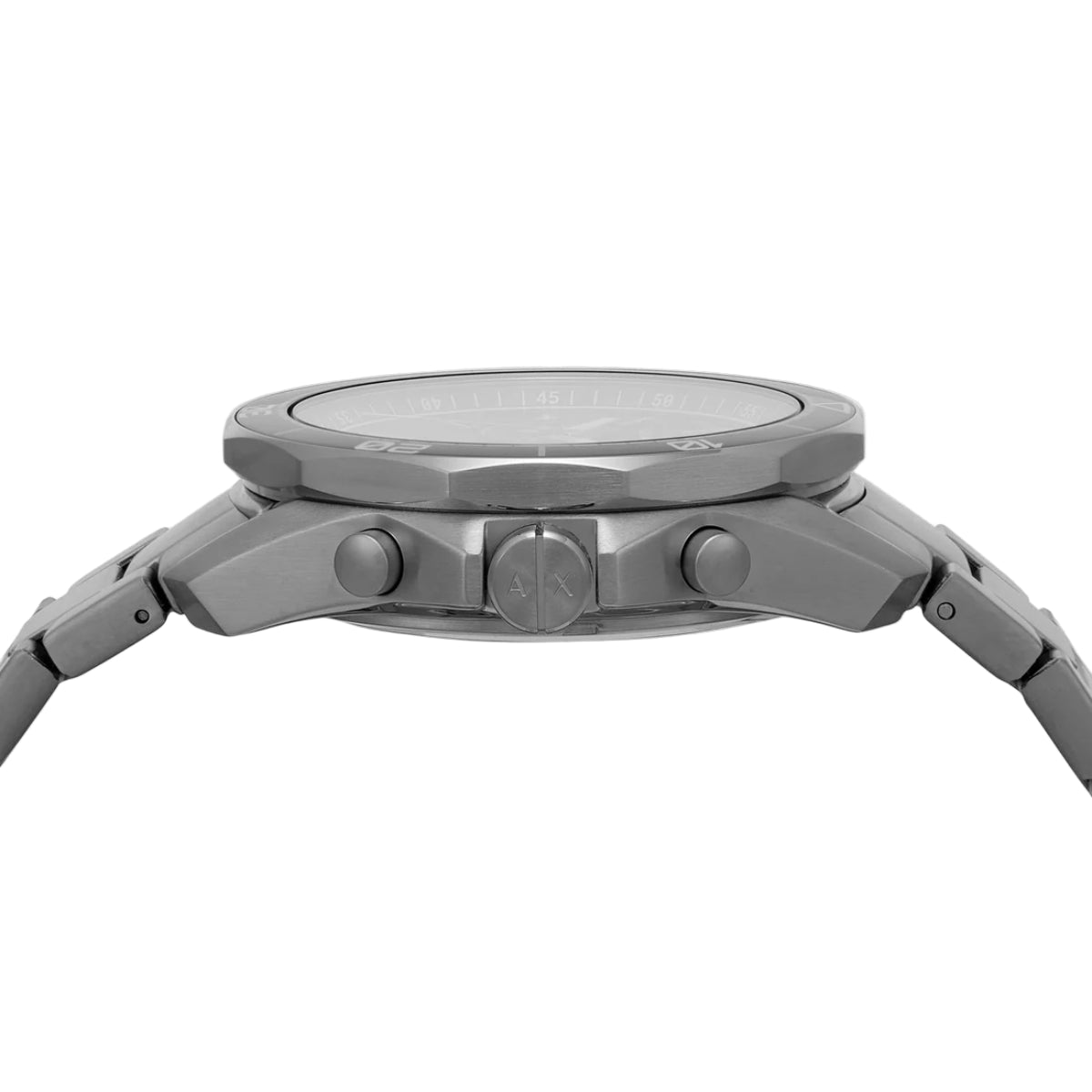 The Armani Exchange AX1959 is a commanding 44mm timepiece crafted for those who appreciate modern edge with timeless functionality. Featuring a black textured dial that adds depth and character, this watch is powered by a reliable chronograph movement for precise timekeeping. The gunmetal stainless steel bracelet complements the dark dial perfectly, creating a sleek and industrial-inspired aesthetic. Whether you're dressing up or keeping it casual, this watch adds a sharp, confident finish to any look.