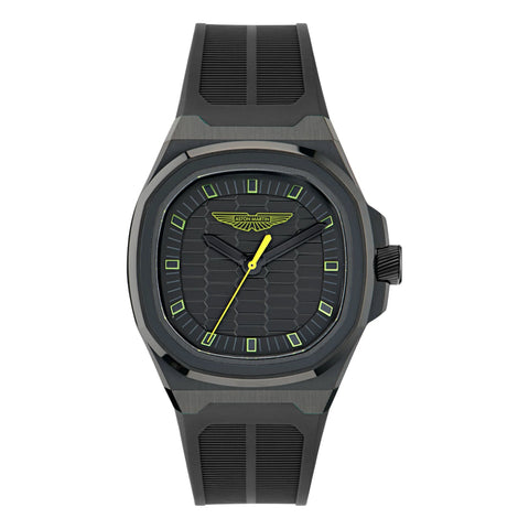Effortless style meets bold sophistication. This timepiece showcases a 40mm IP black case paired with an all-black dial, exuding contemporary elegance. The smooth double-injection silicone strap blends deep black with Aston Martin’s signature Lime Essence, while the iconic Wings logo and lime accents provide a striking visual contrast. Designed for everyday versatility with a daring edge, it delivers precision, modern flair, and unmistakable street-ready attitude.