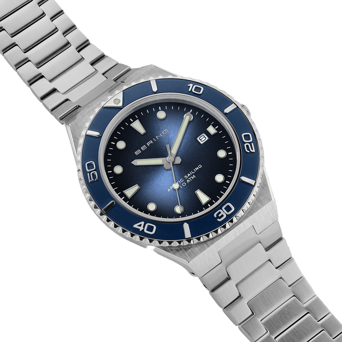 Inspired by the raw power of the sea, the new ARCTIC SAILING collection from BERING fuses rugged performance with striking design. Built to handle high pressure and harsh conditions, this watch is made for those who thrive in the extremes. Its bold stainless steel case and wide-link bracelet exude strength and confidence, while the brushed finish adds a modern, industrial edge. Luminous hands and indices ensure clear readability—even in the darkest environments—while the distinctive bezel completes the sporty, adventure-ready aesthetic.