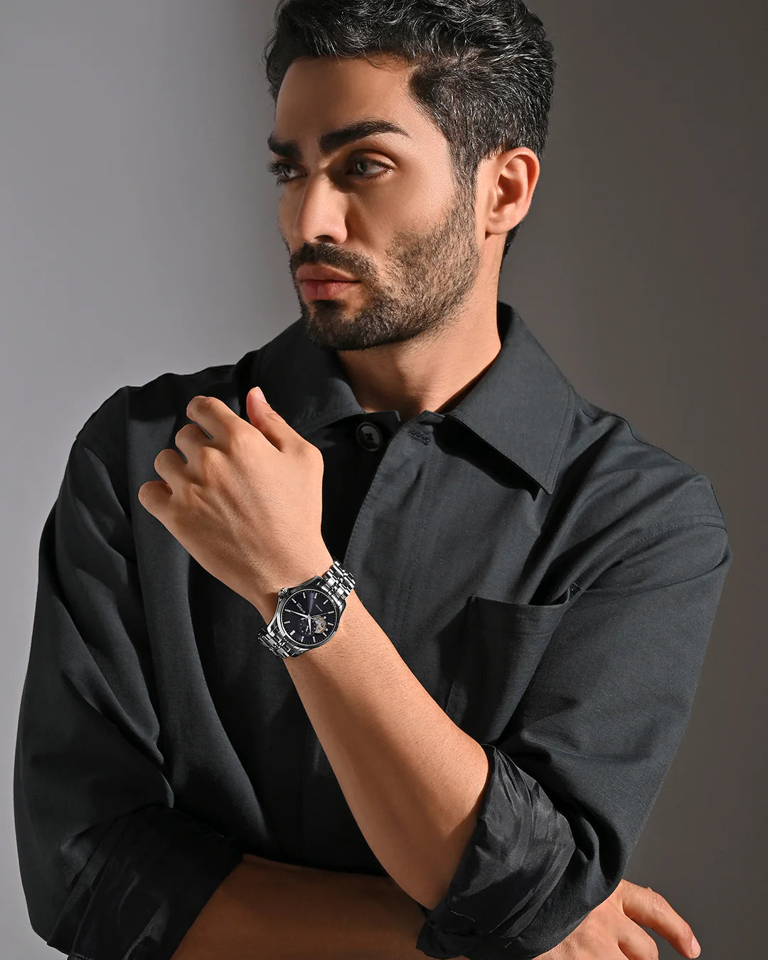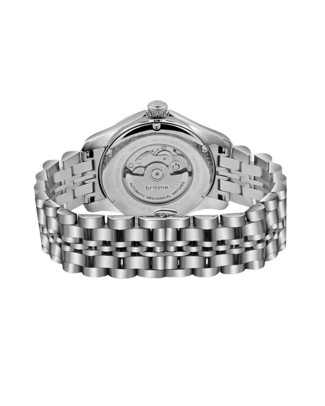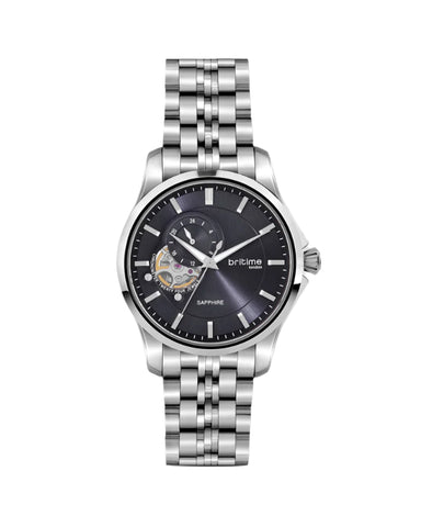 The Crimson Collection by Britime London is the perfect embodiment of timeless precision and refined luxury. With its striking sunburst black dial, complemented by a functional 24-hour subdial and an open-heart window that unveils the inner workings of its intricate automatic movement, this timepiece marries aesthetic allure with exceptional craftsmanship. Enclosed in a robust stainless steel case and paired with a polished multi-link bracelet, it exudes both elegance and durability. Finished with a scratch-resistant sapphire crystal, the Crimson Collection is designed to stand the test of time, making it the ideal choice for those who seek a bold yet sophisticated accessory that effortlessly elevates any occasion.
