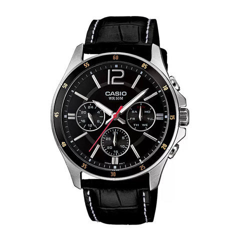 Casio A834 ENTICER MEN MTP-1374L-1AVDF Black Leather Watch