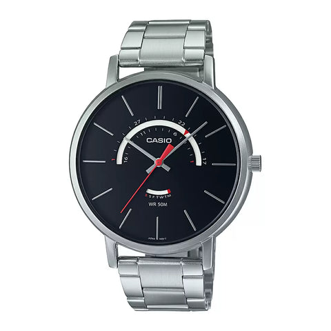 This latest addition to Casio's popular analog minimalist series blends understated elegance with distinctive design details. The clean, uncluttered dial is elevated by two eye-catching elements: a sleek date window stretching from 3 to 9 o’clock and a subtle day window between 5 and 7 o’clock. These unique slits add visual intrigue without compromising the watch’s minimalist charm. Built for both style and durability, it features 50-meter water resistance—ideal for daily wear, from professional settings to casual outings.