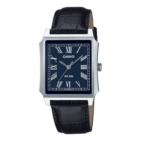 The Casio MTP-B190L-2BVDF is a sophisticated men’s analog watch that blends timeless elegance with everyday practicality. With a distinctive rectangular case, a deep navy blue dial, and a premium leather strap, this timepiece is perfect for modern gentlemen who value refined style without compromising on functionality.