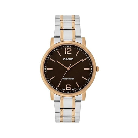 Elevate your everyday style with the CASIO Enticer MTP-SN5YSR-5A, a sophisticated men’s analog timepiece that blends timeless design with practical reliability. Crafted for the modern man, this watch sports a sleek round dial with easy-to-read markers and a classic dual-tone finish that transitions effortlessly from office meetings to weekend plans. Featuring precision quartz movement, durable stainless steel construction, and a comfortable wrist fit, this Enticer model delivers both function and flair. Whether you're heading out for work or winding down after a long day, this watch keeps you punctual with standout style.