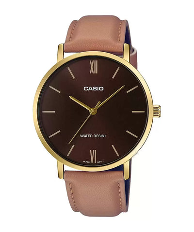 Casio ENTICER MEN MTP-VT01GL-5BUDF - A1783 Brown Leather - Men's Watch
