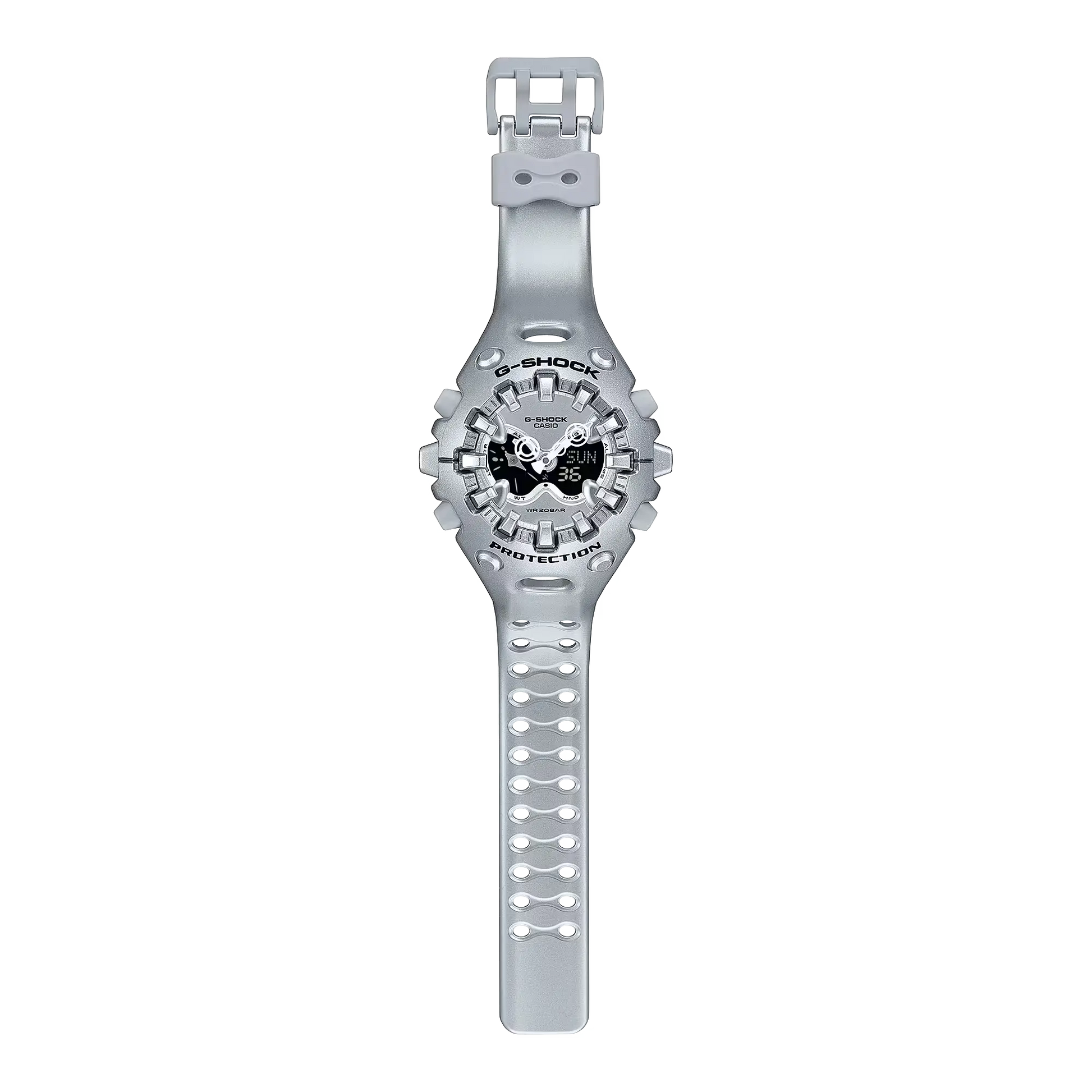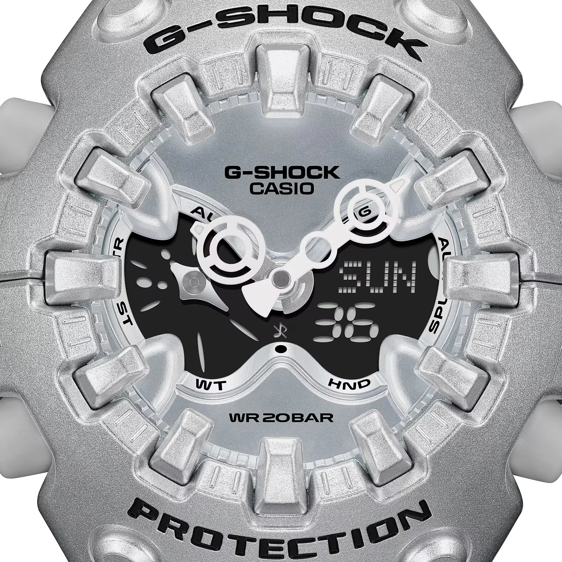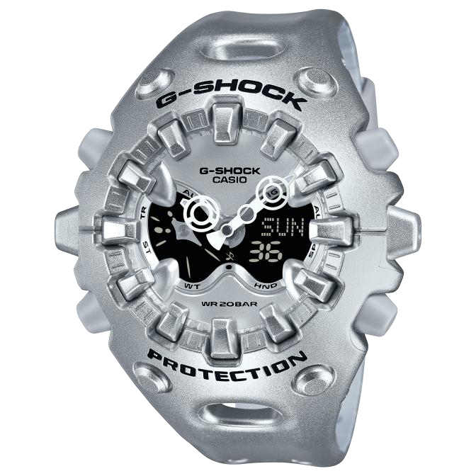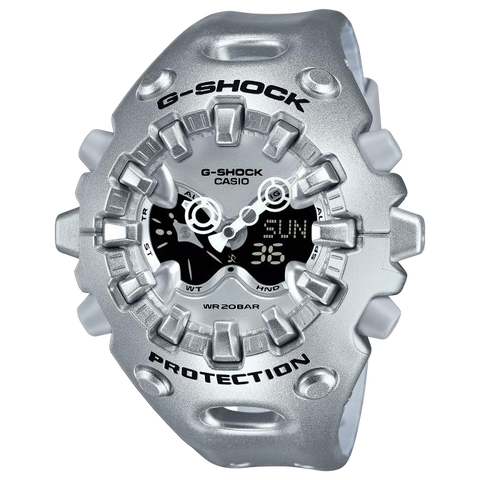 G-SHOCK pushes the limits once again with the GA-V01 — a fresh take on toughness and design. Featuring a bold, organic exterior with sharp lines, a full-screen LCD, and a metallic openwork dial, it introduces the Shock Release Hand system for enhanced durability.