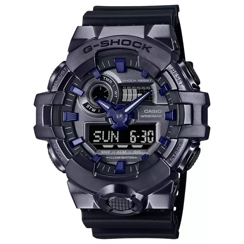Elevate your wrist game with the G-STEEL GM-700, a powerful fusion of rugged style and sleek metal design. Featuring a durable analog-digital build, this timepiece pairs a bold stainless-steel bezel in silver, gold, or a striking purple-black combo with the toughness G-SHOCK is known for. Inspired by the GA-700’s iconic big case, the GM-700 adds a front button for instant LED illumination—perfect for clarity in low-light moments. A true statement piece built for impact, day or night.