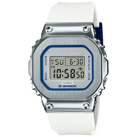 Step back in time with the Casio Lover’s Collection, a tribute to the first matching G-SHOCK watches introduced in 1996. This nostalgic pair, the G-SHOCK GM-5600 and its smaller counterpart, the GM-S5600, exudes timeless elegance with a luxe metal bezel and a classic white band, accented with navy blue details. The distinctive cloth band texture from the original model is reimagined with glass printing on the watch faces, offering a sleek and minimalist design. Whether you're looking for the perfect gift or a stylish companion for any occasion, these watches combine nostalgia with modern sophistication, making them an ideal romantic gesture for someone special.