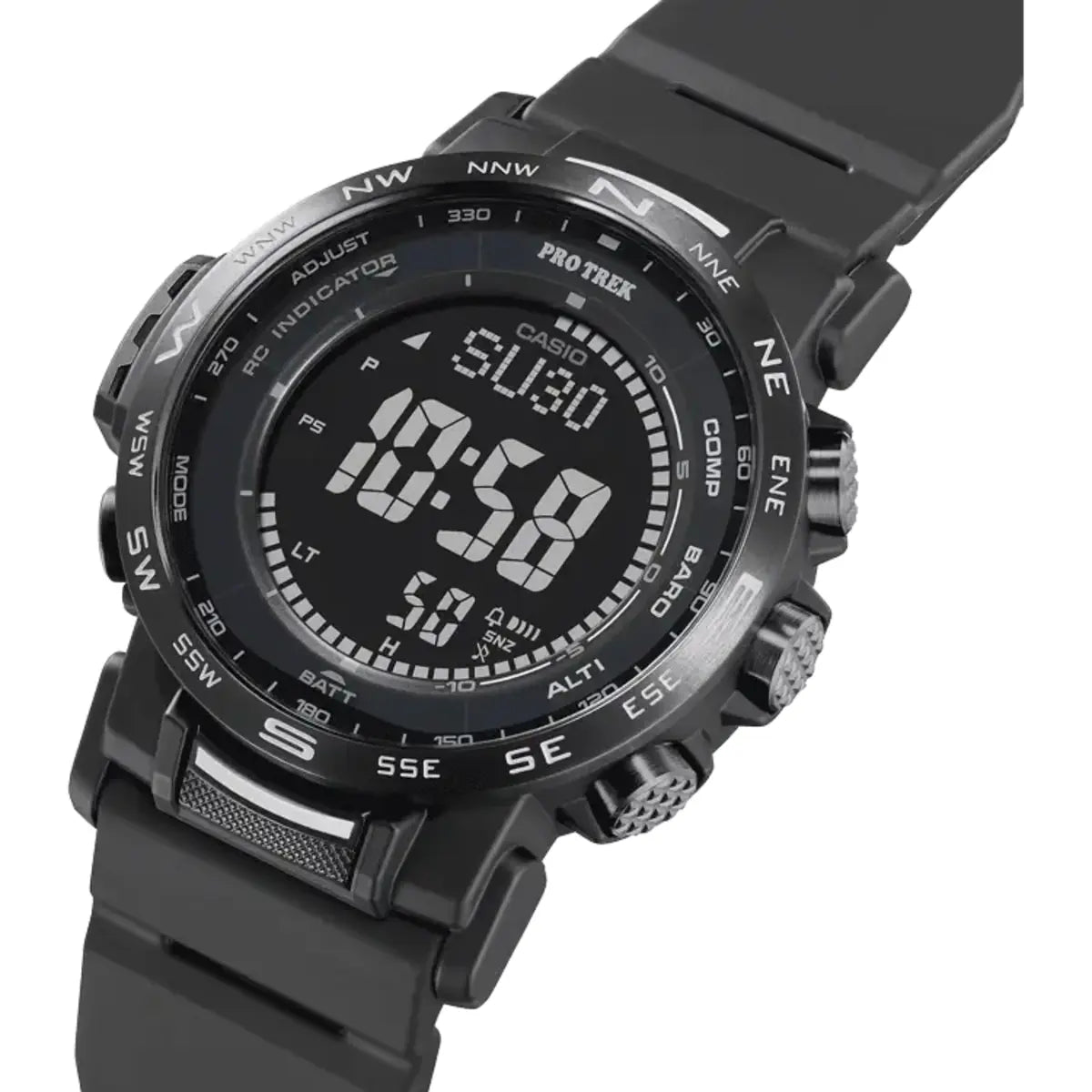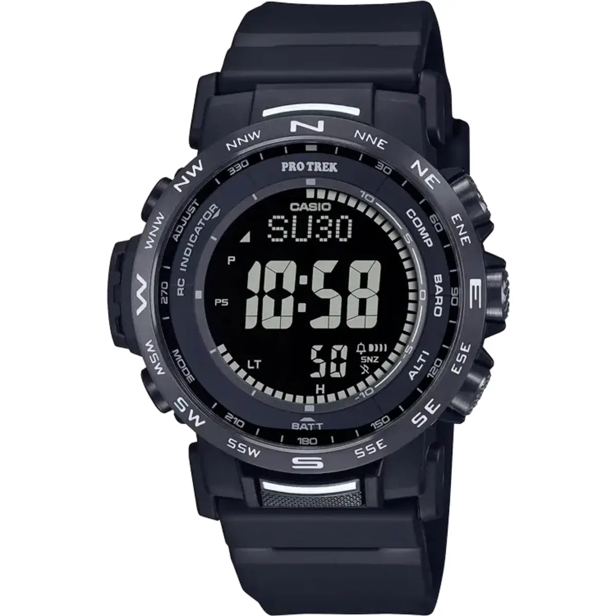 Built for the outdoors and designed for precision, the Casio PRW-35Y-1BDR combines rugged durability with advanced digital technology. Featuring a bold black dial and compact case, this Pro Trek timepiece is packed with essential features like triple sensor technology (altimeter, barometer, compass), sunrise/sunset data, and 100-meter water resistance. Whether you're on the trail or in the city, this sleek and functional watch is engineered to perform in any environment."