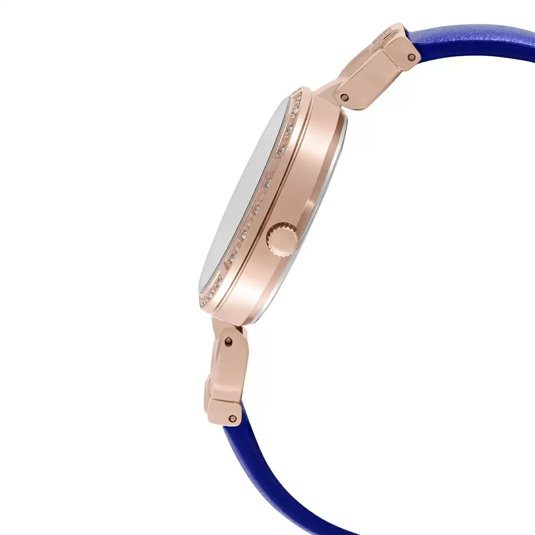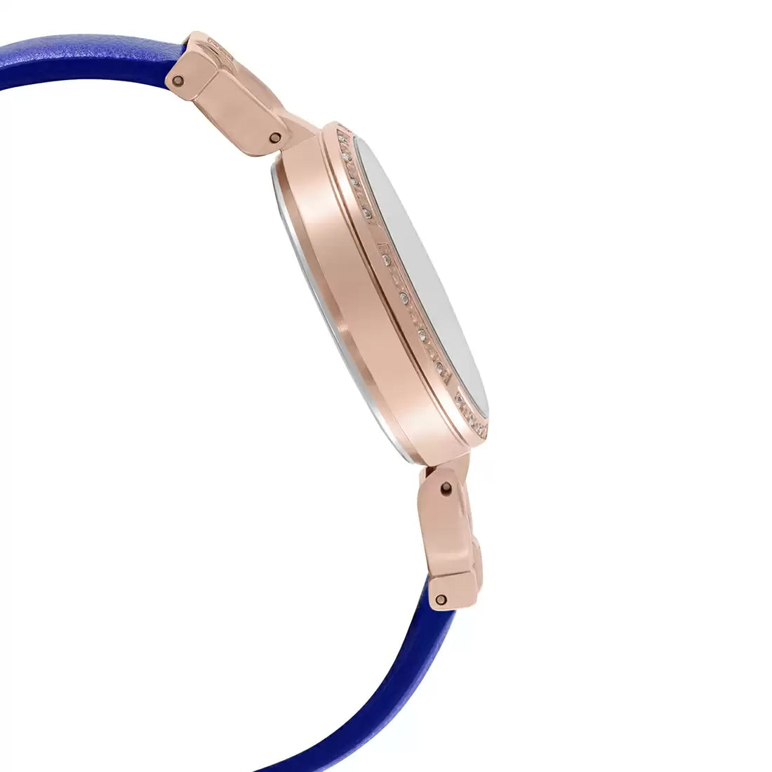 This elegant timepiece combines style and functionality, featuring a stainless steel case and bezel with a luxurious pink gold ion-plated finish. The genuine leather band adds comfort and sophistication, while the durable mineral glass protects the sleek dial. With 50-meter water resistance, this watch is designed for everyday use without compromising on style. The analog display showcases three hands (hour, minute, second) and includes three additional dials for date, day, and 24-hour time. It offers an impressive accuracy of ±20 seconds per month and a 3-year battery life (SR920SW). With a case size of 38.8 x 32 x 8.4mm and weighing just 33g, this watch is the perfect balance of elegance and practicality.