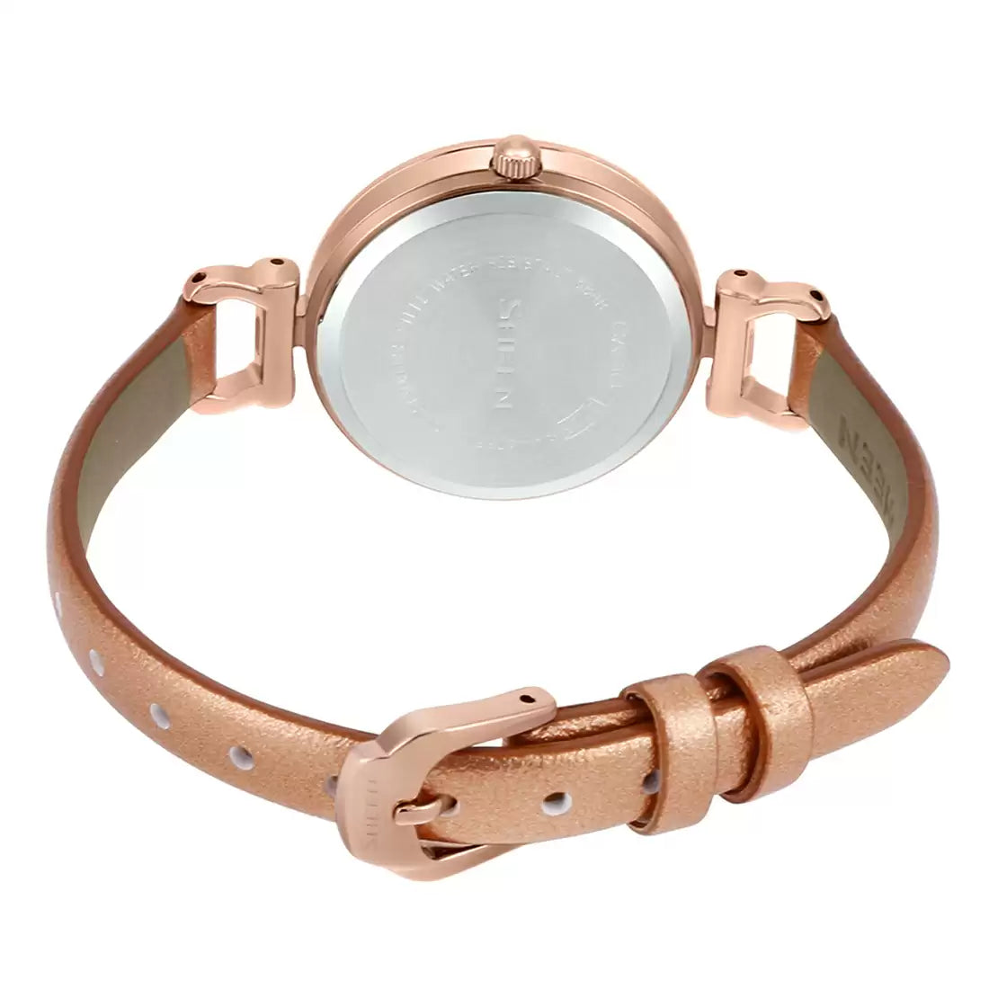 The SHEEN SHE-4055PGL-7BUDF, model SX259, is a stunning women’s watch that exudes elegance and sophistication. Featuring a beautiful pink gold ion-plated (IP) case, this timepiece combines timeless style with modern appeal. The refined design showcases a delicate balance of luxury and simplicity, making it perfect for both everyday wear and special occasions. Its sleek and stylish appearance is complemented by a durable build, ensuring both beauty and functionality. With its exquisite details and radiant finish, this Casio Sheen watch is a must-have accessory for the fashion-forward woman.