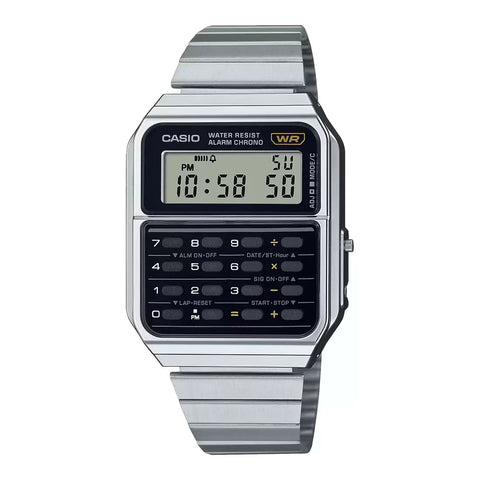 Fuel your inner tech-lover with a bold throwback—this Casio calculator watch blends nostalgic '80s flair with a fresh metallic finish for a sleek, modern edge. A timeless icon since its debut, the classic calculator functions remain intact, delivering both practicality and playful charm.