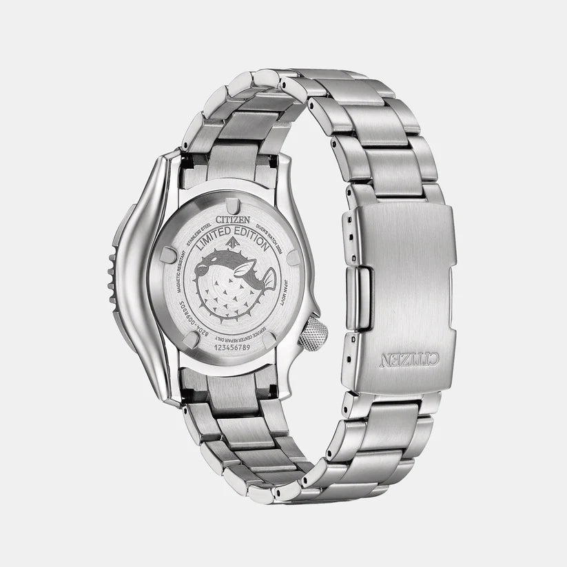 The Citizen Promaster Dive Limited Edition Automatic Men's Watch blends heritage and modern design, inspired by the iconic 1989 diving watch. Featuring a 42mm case, sapphire crystal, and a distinctive serrated bezel, it’s designed for today’s dive watch enthusiasts. The blue rotating bezel frames a luminous blue dial, while the engraved fugu design on the case back adds a unique touch. With ISO 200m water resistance, a screw-down crown, and a limited edition collector’s dive tank, this watch is as functional as it is collectible.