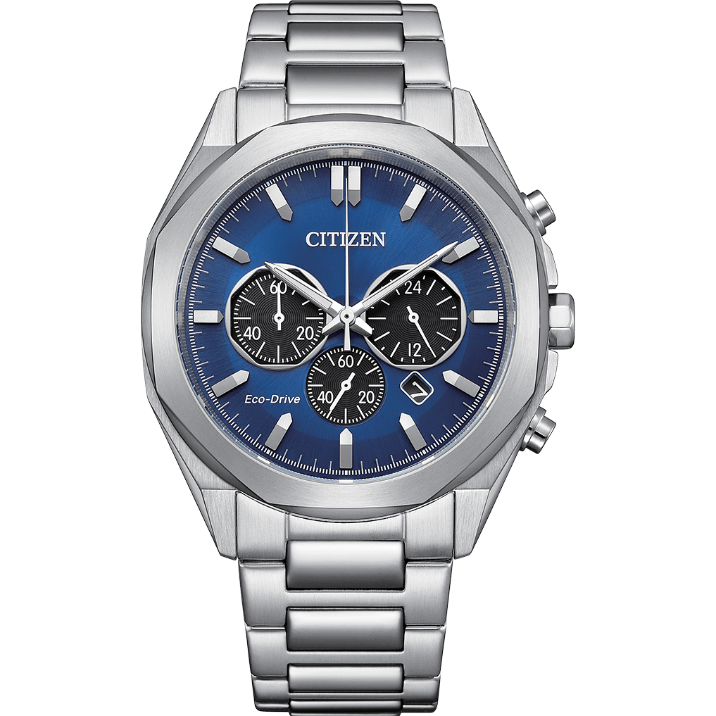 The Eco-Drive Chronograph watch effortlessly combines style and precision. Featuring a classic 41mm stainless steel case with a striking dark blue dial and black subdials, it exudes timeless charm. Powered by Eco-Drive technology, it harnesses light to offer a 9-month power reserve, eliminating the need for battery changes. With chronograph functionality, a 24-hour display, and a date function, it’s perfect for both everyday tasks and sports. Water-resistant up to 10 bar and protected by mineral glass, this watch is as durable as it is stylish.