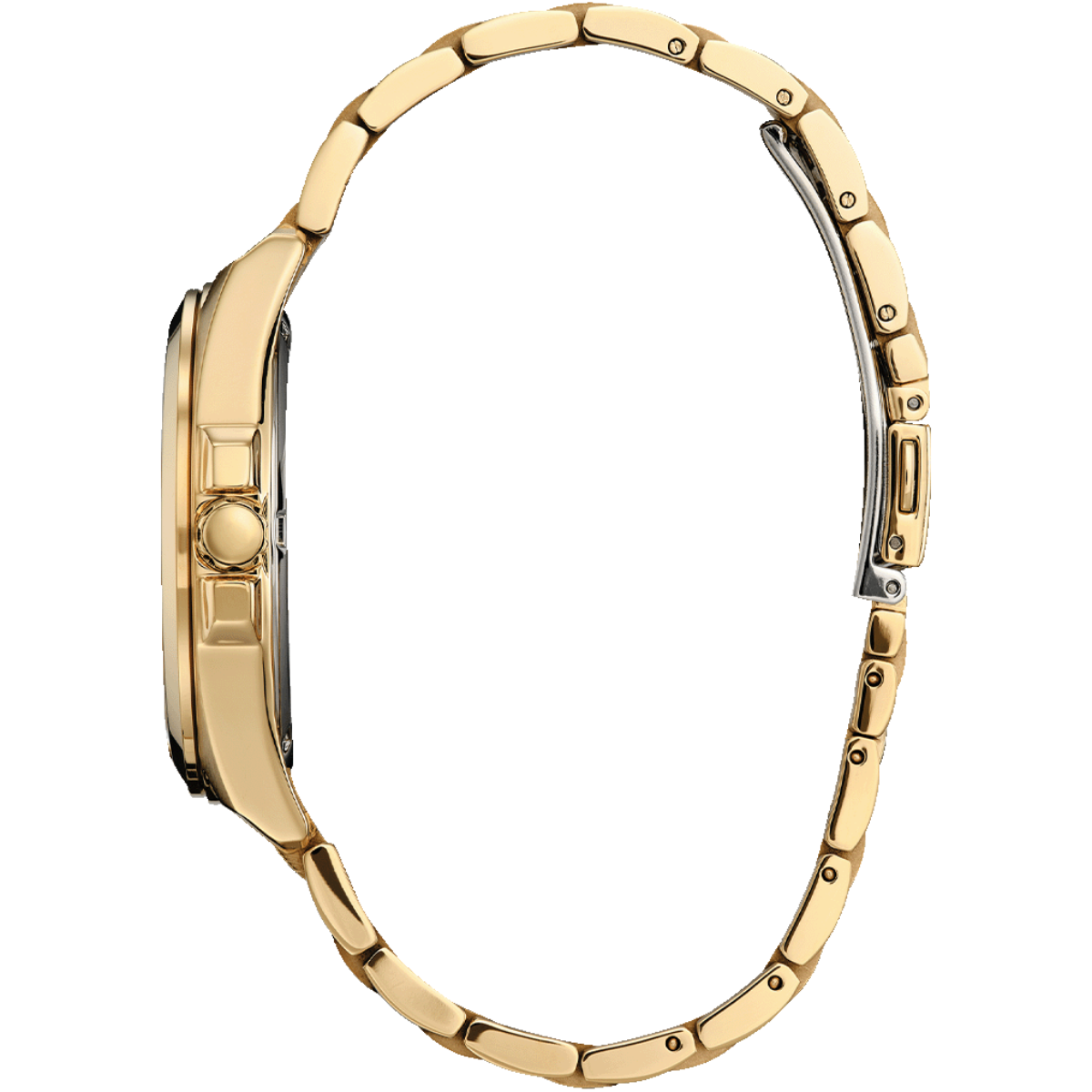 Make a lasting impression with this elegant timepiece, designed to stand out in both style and functionality. Featuring a gold-tone stainless steel case and a refined champagne 3-hand dial beneath a protective sapphire crystal, this watch blends classic simplicity with a touch of sophisticated charm. The gold-tone stainless steel bracelet, equipped with a fold-over clasp and push buttons, adds an element of subtle refinement. With water resistance up to 100 meters and Eco-Drive technology, which harnesses the power of any light to keep the watch running without the need for batteries, this timepiece is both eco-friendly and effortlessly stylish.