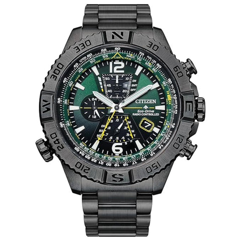 The newly reimagined Citizen Promaster Navihawk men’s watch captures the raw energy and atmosphere of flight. Its grey stainless-steel case and bracelet evoke the shifting tones of storm clouds, while the deep black dial, punctuated by vivid green accents, reflects the sharp clarity of a cockpit’s instruments. Powered by Citizen’s light-driven Eco-Drive technology, this timepiece delivers sustainable performance alongside an impressive suite of functions, including a precision chronograph, atomic time synchronization, 12/24-hour format, and a dedicated power-reserve display. Designed for those who are driven to explore beyond familiar boundaries, the Promaster Navihawk is a companion made for life above and beyond the horizon.