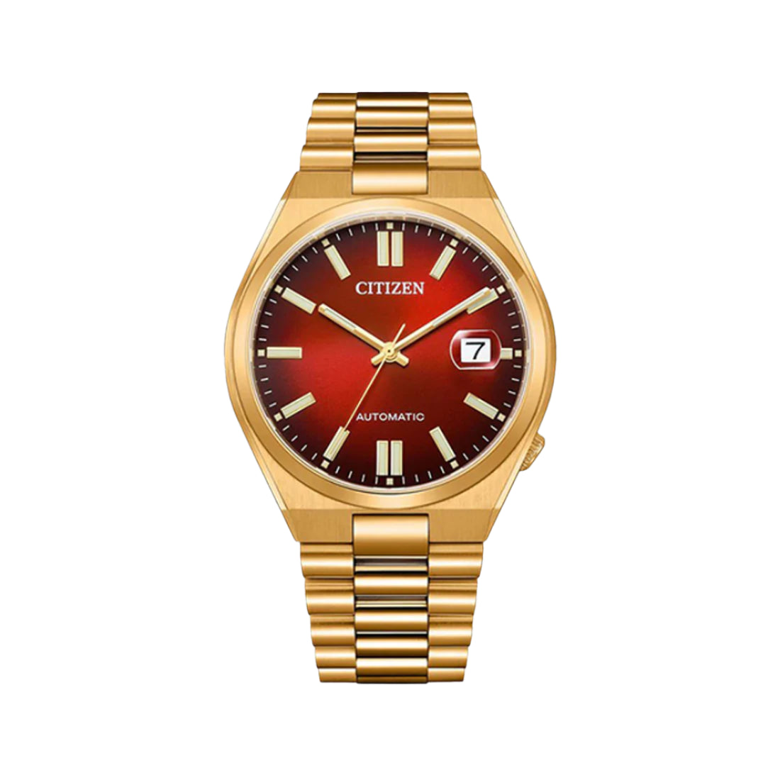 Sleek, contemporary, and effortlessly refined, this mechanical timepiece from the NJ015 series reflects modern sophistication. Powered by CITIZEN’s reliable 8210 movement, the watch boasts a bold rose gold-plated stainless steel case and bracelet, perfectly complemented by a striking scarlet red dial. With a date display beneath a sapphire crystal featuring a magnifier, the watch offers both elegance and functionality. The skeleton case back provides a glimpse into the intricate movement within, making this piece a statement of precision and style.