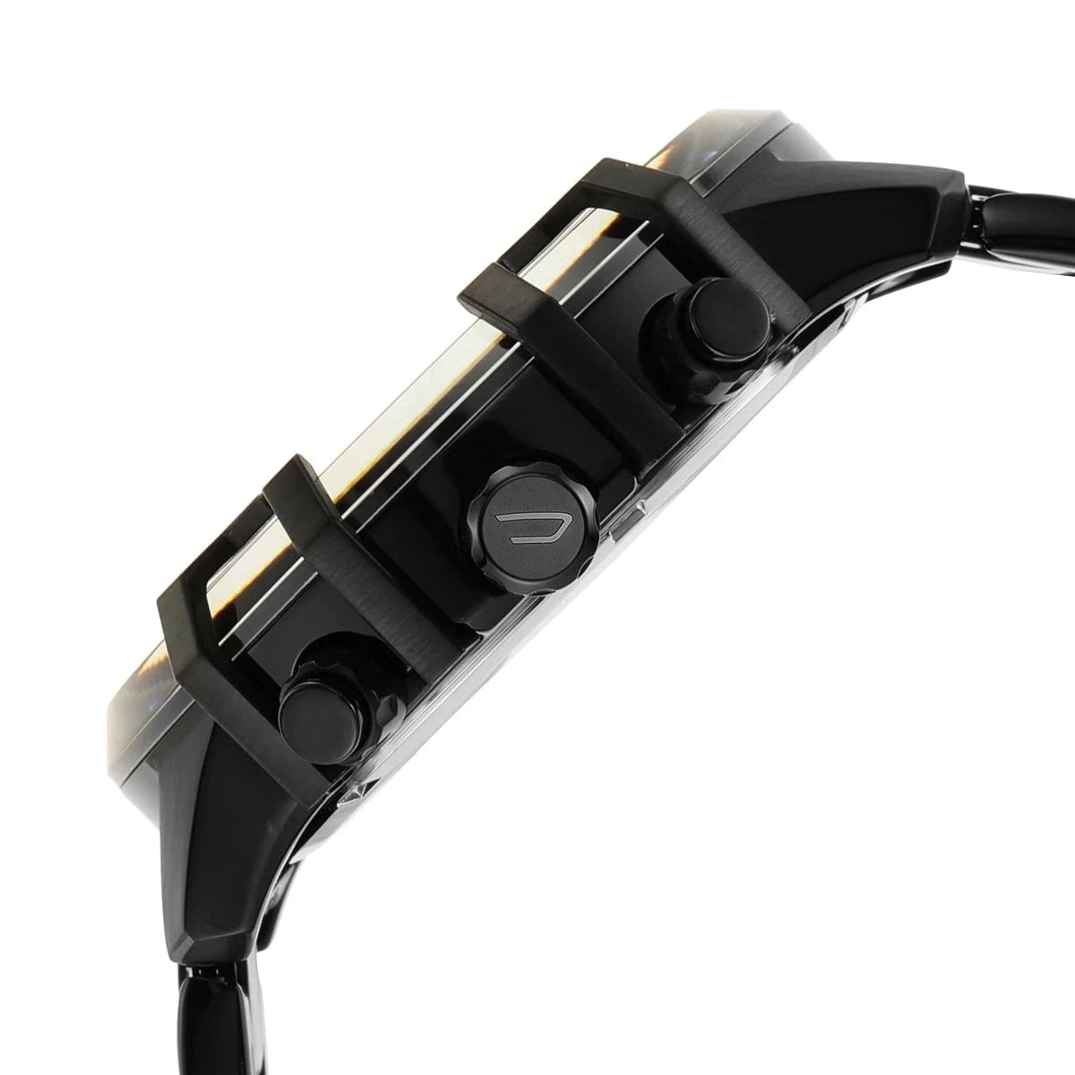 Diesel continues to push the boundaries of urban style with this bold, meticulously crafted timepiece. Featuring a robust stainless steel case with functional side pushers, this watch exudes strength and precision. The sleek black stainless steel bracelet perfectly complements the black dial, which is detailed with silver-tone stick indexes and an eye-catching iridescent crystal. Powered by a dynamic chronograph movement, it delivers sporty functionality wrapped in high-class sophistication. Designed for men who embody confidence and style, this watch makes a powerful fashion statement wherever it goes.