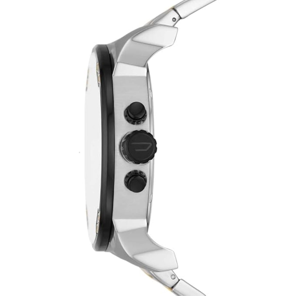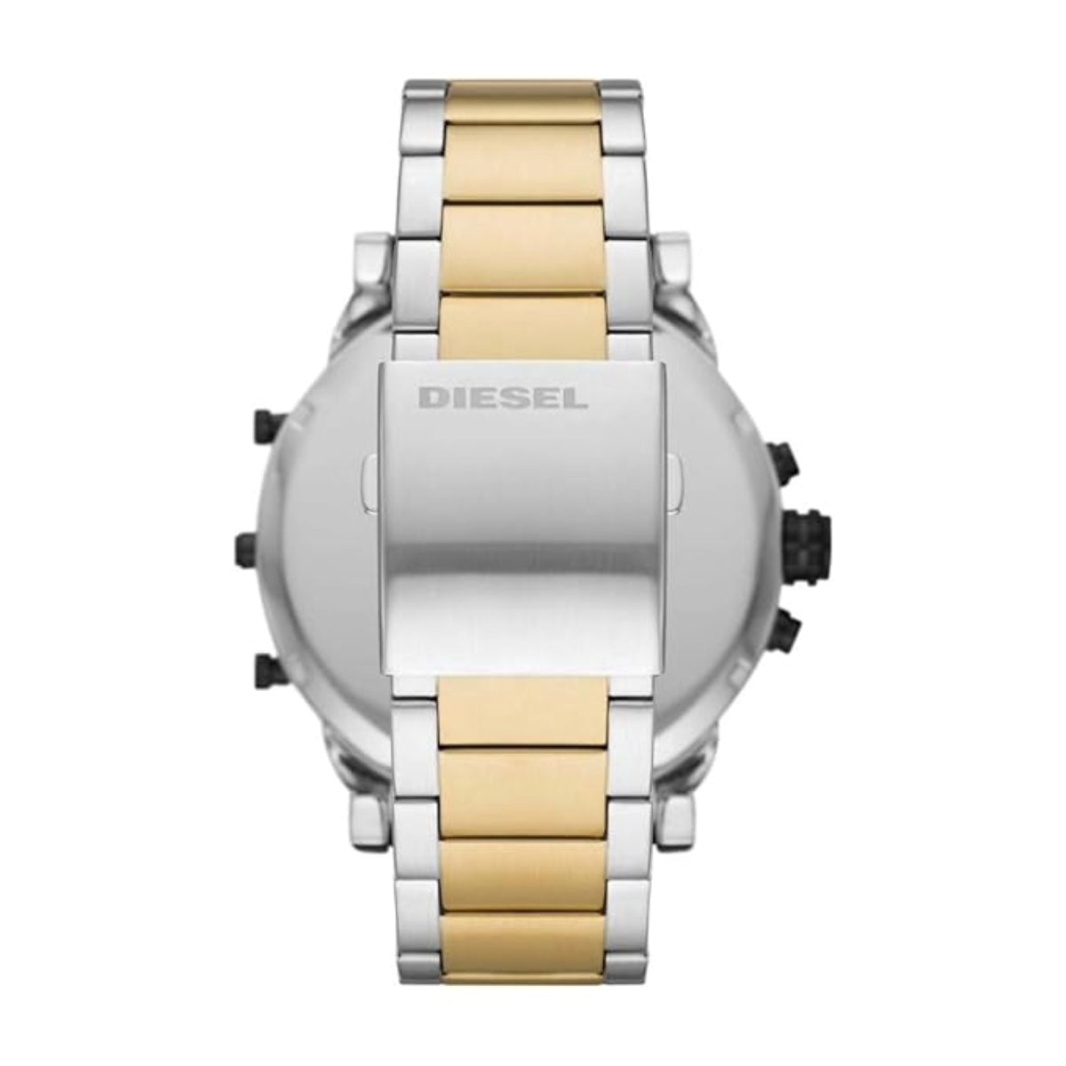 Bold design meets cutting-edge style with the Diesel Mr. Daddy 2.0 Men’s Analog Watch — a statement timepiece for those who dare to stand out. Featuring a massive 57mm black sunray textured dial, this watch embodies industrial-inspired elegance with its intricate chronograph display and bold index markers. Housed under durable mineral glass and paired with a two-tone stainless steel bracelet, it blends rugged durability with modern sophistication. The crown and pushers add functional appeal, while the dual-tone finish brings a refined edge to your wristwear. Perfect for the confident man who commands attention.