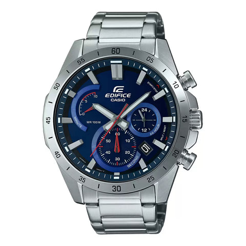 The Casio Edifice EX541 EFR-573D-2AVUDF showcases a striking blue chronograph dial complemented by a polished stainless steel case and band. This dynamic watch features precise quartz movement, a tachymeter scale, and a date display for added functionality. With a water resistance of 100 meters and a scratch-resistant mineral glass, it’s perfect for both everyday wear and special occasions. Ideal for men who appreciate sporty elegance and reliable performance in a timepiece.