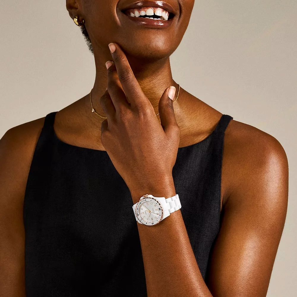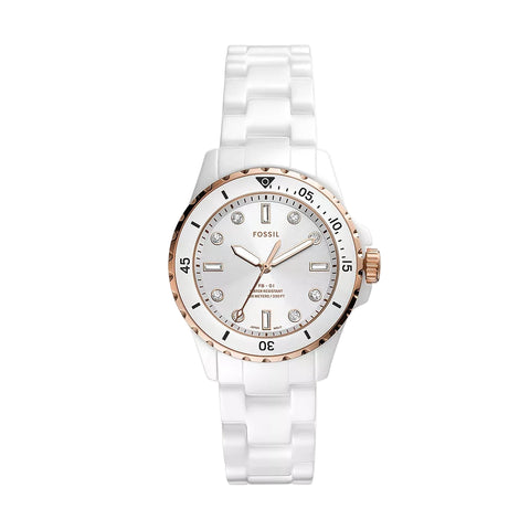 Fossil FB-01 Three-Hand White Dial Ceramic Women's Watch CE1107