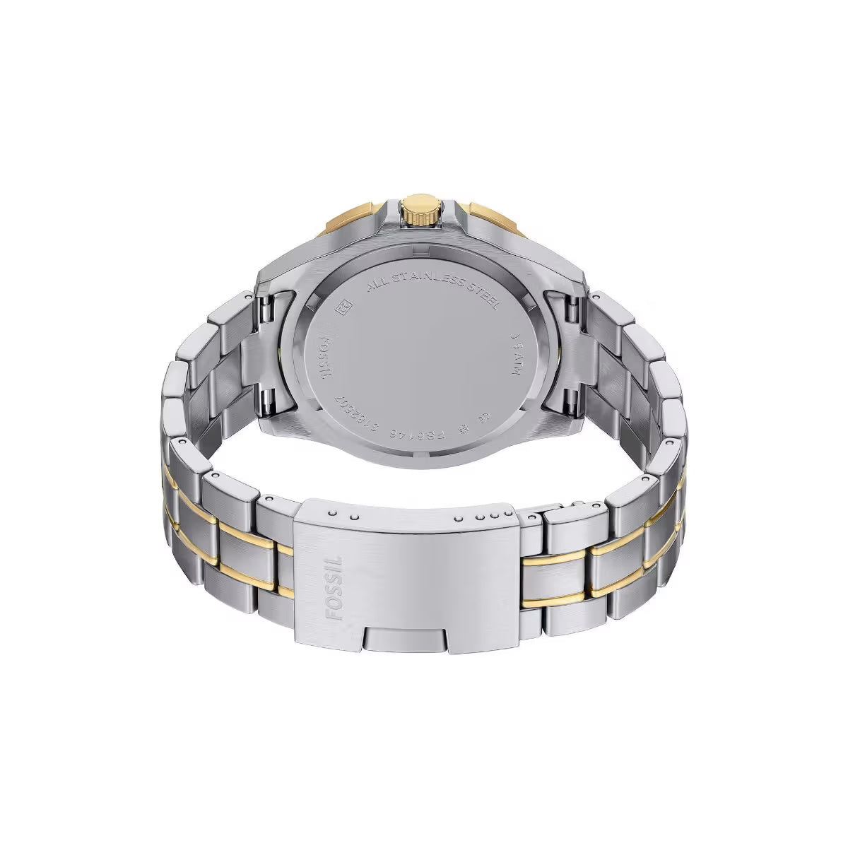 Bold in presence and timeless in style, the Garrett watch makes a confident statement with its oversized design and sport-inspired aesthetic. The two-tone stainless steel bracelet—featuring a refined blend of silver- and gold-tone finishes—effortlessly complements the coordinating case. A deep blue sunray dial adds dimensional elegance, while multifunction sub-dials bring everyday functionality to the forefront. Built with precision and crafted from premium materials, this timepiece is a perfect balance of durability, sophistication, and daily versatility.