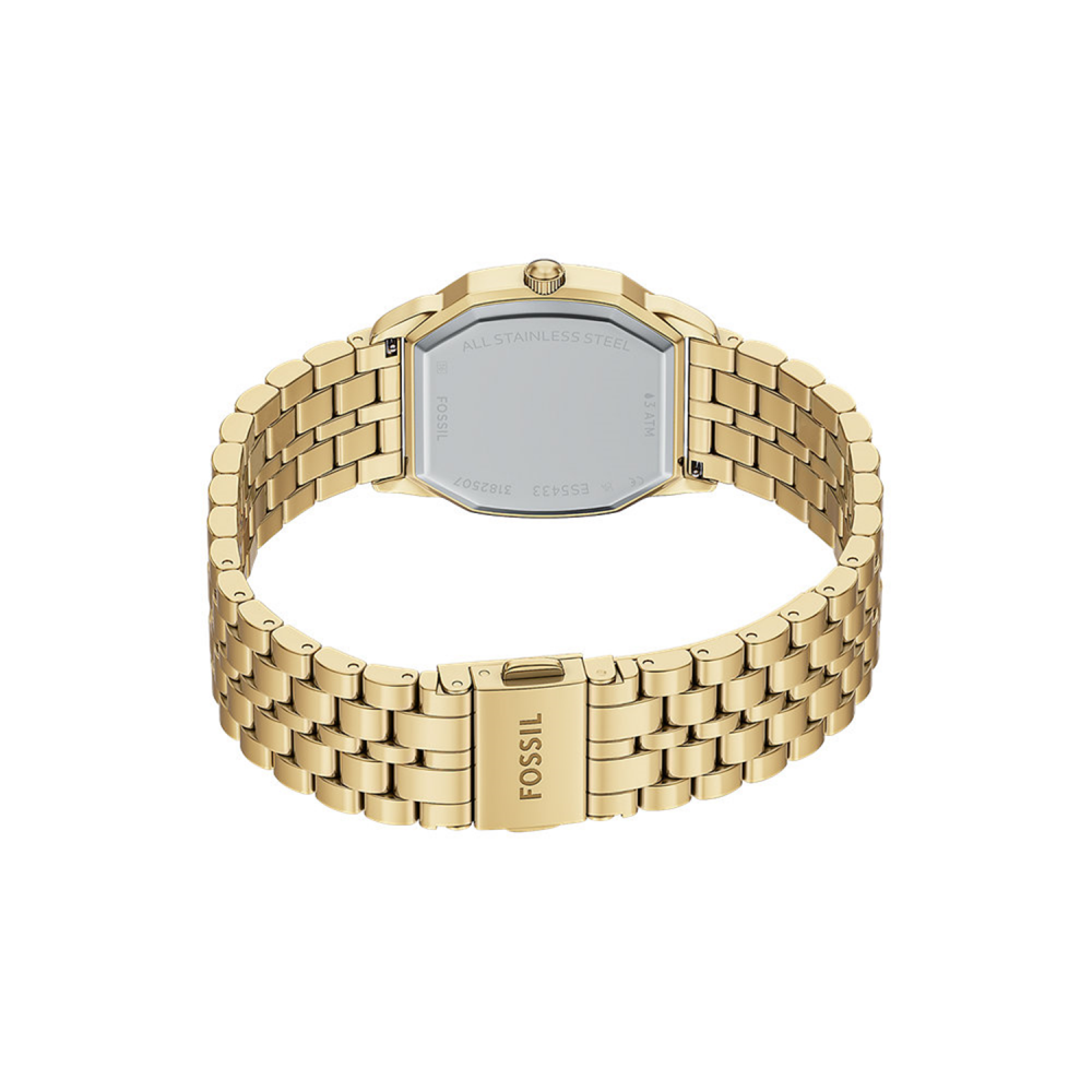 Featuring a bold octagonal gold-tone stainless steel case, this watch showcases a modern geometric silhouette paired with a coordinating gold-tone stainless steel bracelet. The textured black dial adds depth and a subtle contrast, while the precise three-hand movement ensures reliable timekeeping. Meticulously crafted with clean lines and premium materials, this timepiece effortlessly combines contemporary style with timeless elegance.