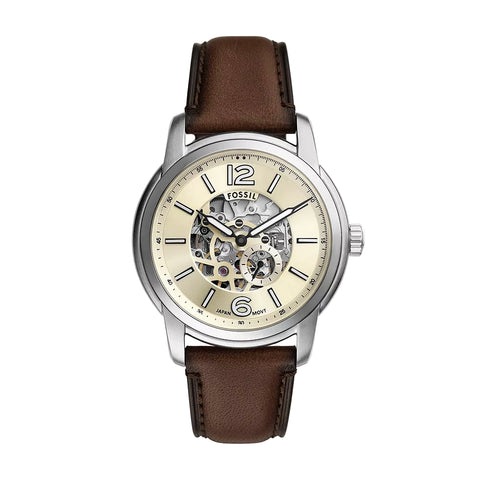 Fossil Heritage Automatic Cream Dial Analog Leather Strap Men Watch ME3264
