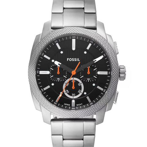 Fossil Machine Quartz Black Dial Chronograph Stainless Steel Men Watch FS6095