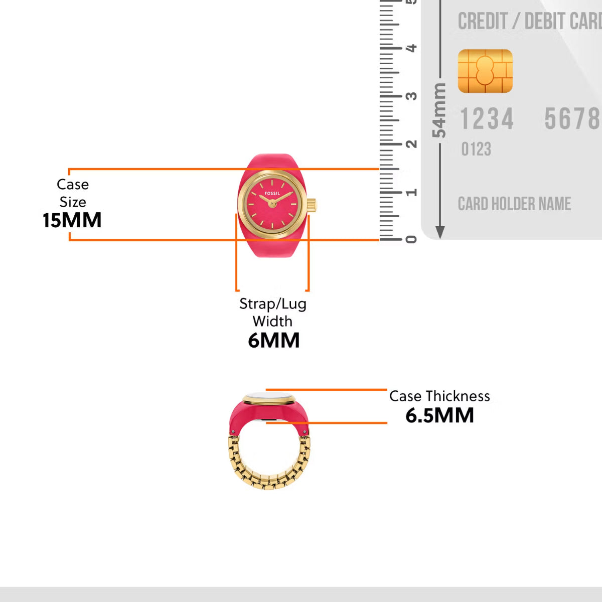 Redefining the classic watch ring, this sleek two-hand timepiece pairs a delicate gold stainless steel case with a striking glossy pink ceramic coating. Combining feminine charm with bold style, it’s water-resistant up to 5 ATM—perfectly crafted to accompany you from day to night. Just slip it on and shine wherever you go.