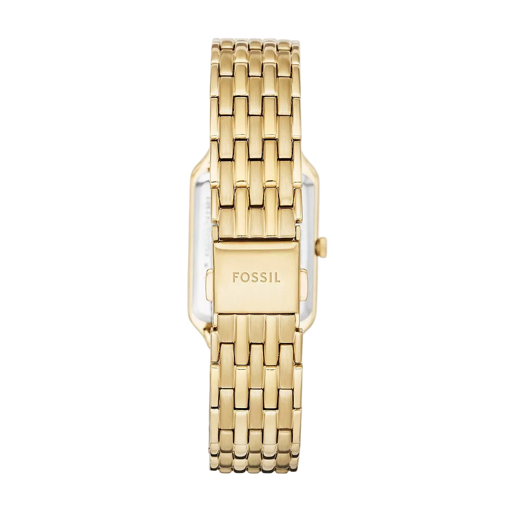 The 23mm Raquel watch is a refined statement of timeless style. Its sleek rectangular case frames a silver satin dial, offering a clean and elegant backdrop for the three-hand date movement. Finished with a polished gold-tone stainless steel bracelet, this petite timepiece blends classic charm with modern minimalism—perfect for adding a subtle touch of luxury to your everyday look.