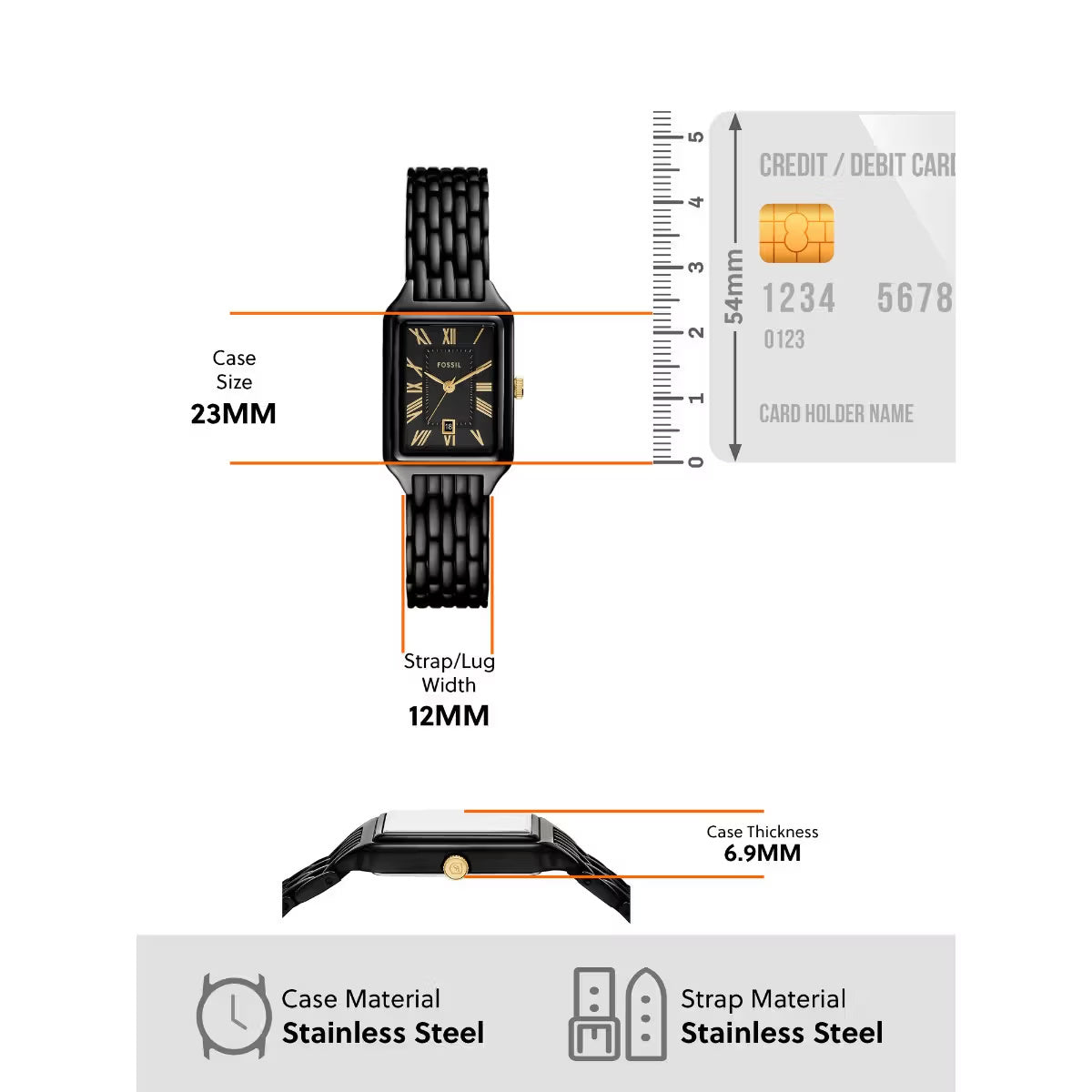 Fossil Raquel Quartz Three-Hand Date Black Dial Stainless Steel Women Watch ES5385