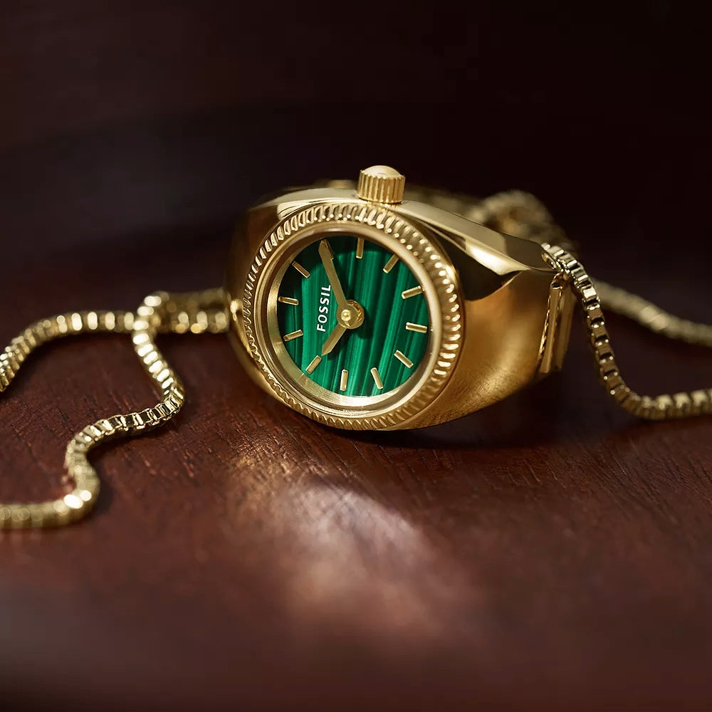 Fossil Two-Hand Gold-Tone Analog Stainless Steel Women Ring Watch ES5308