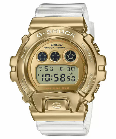 Introducing the CASIO G-SHOCK GM-6900SG-9DR White Skeleton Series Men's Watch. This standout timepiece features a striking white skeleton design paired with a sleek gold stainless steel bezel. Combining luxury with durability, it offers a bold, modern aesthetic while delivering essential features like a 200-meter water resistance, LED backlight, and shock resistance. Perfect for those who appreciate both high style and rugged performance, this watch is designed to make a statement while standing up to everyday challenges.